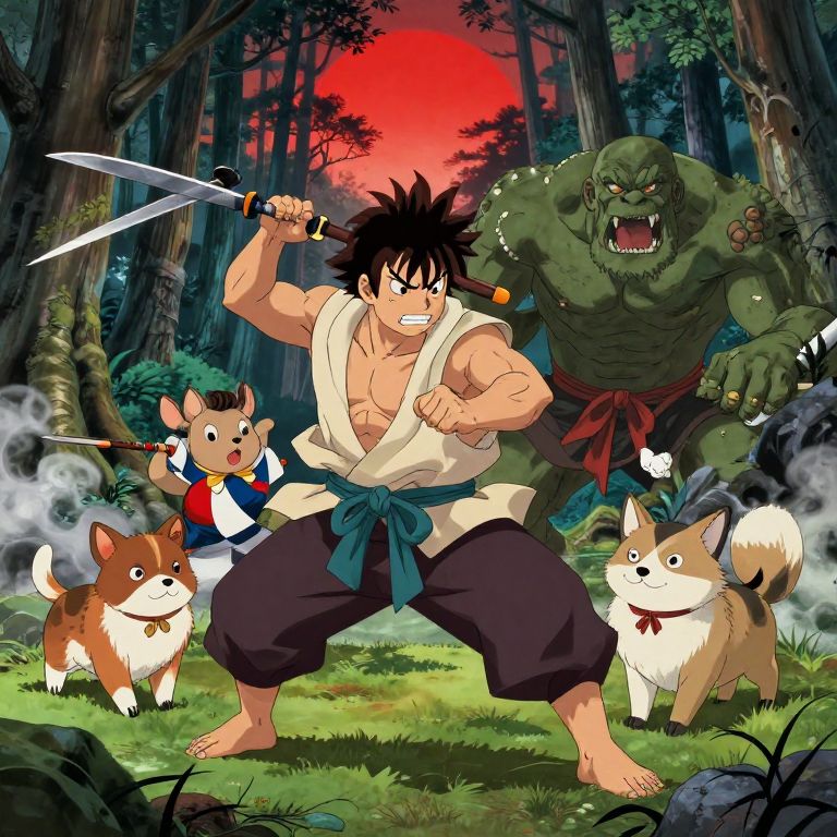 Samurai Warriors and Wolf in Dynamic Anime Style