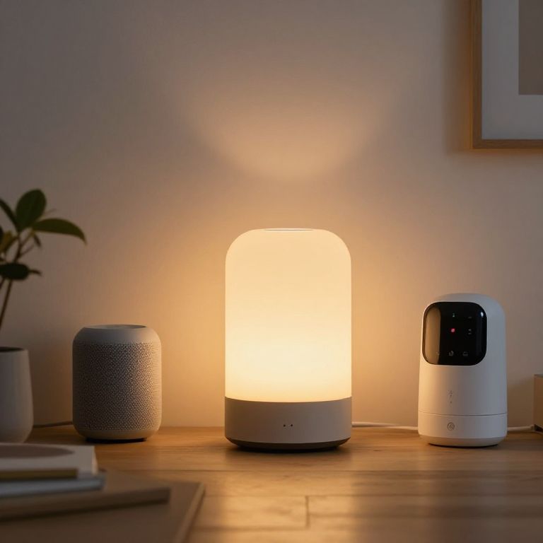 Hot prompts for AI in a smart home environment, interacting with smart devices like lights, speakers, and robots, warm ambient glow, realistic textures, daily life scene, immersive and natural lighting, MidJourney style