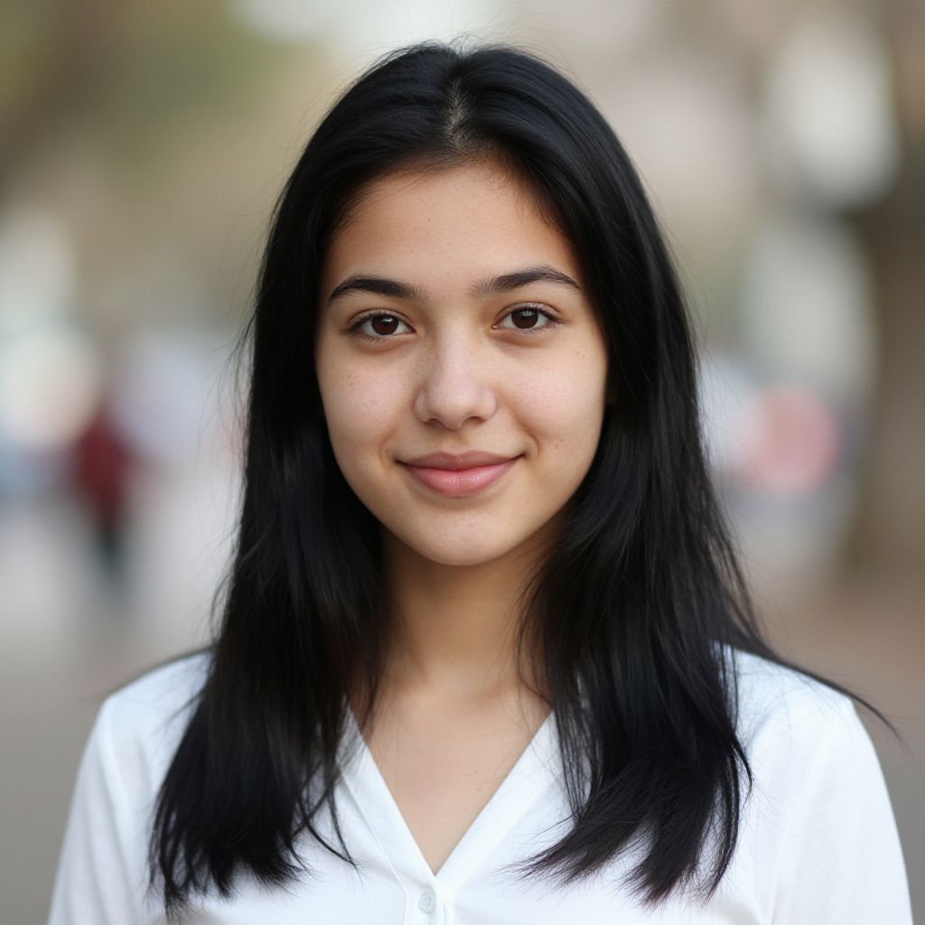 Realistic Black-Haired Girl Smiling