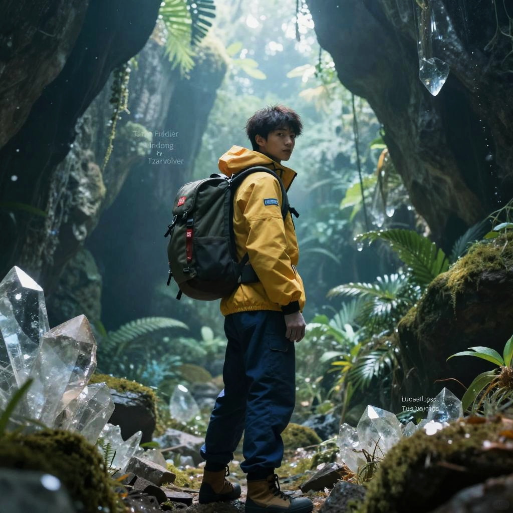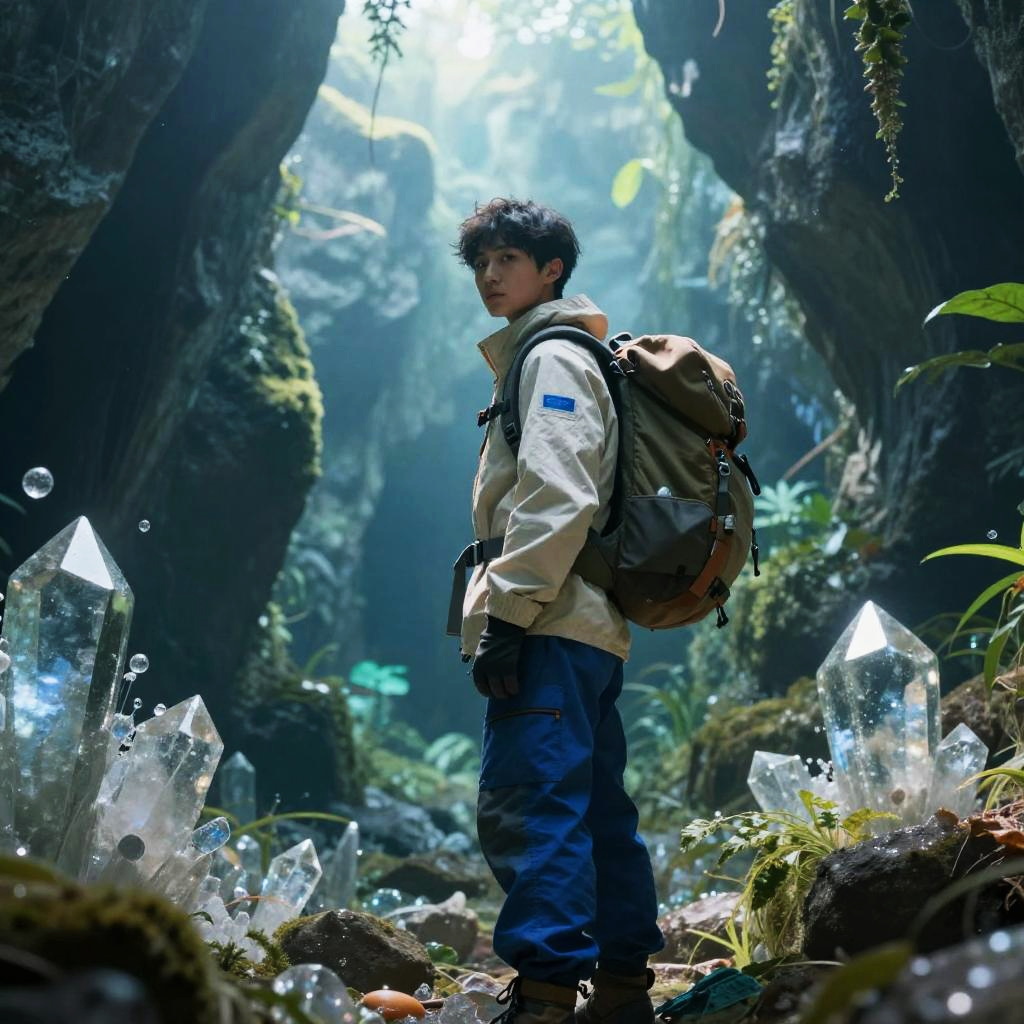 Uploaded on e621, (by Taran Fiddler, by Lindong, by Tzarvolver, by Juiceps), solo (((lucario)), climbing suit, backpack, blue pants), (standing in crystyal cave, jungle, underwater:1.25), (side view, half-length portrait, looking at viewer:1.3), , (detailed background, depth of field, half body shadow, sunlight, ambient light on the body), masterpiece, best quality, ultra realistic, 4k, 2k, (intricate:0.9), (high detail:1.3), film photography, soft focus, RAW photo, photorealistic, analog style, subsurface scattering, photorealism, absurd res