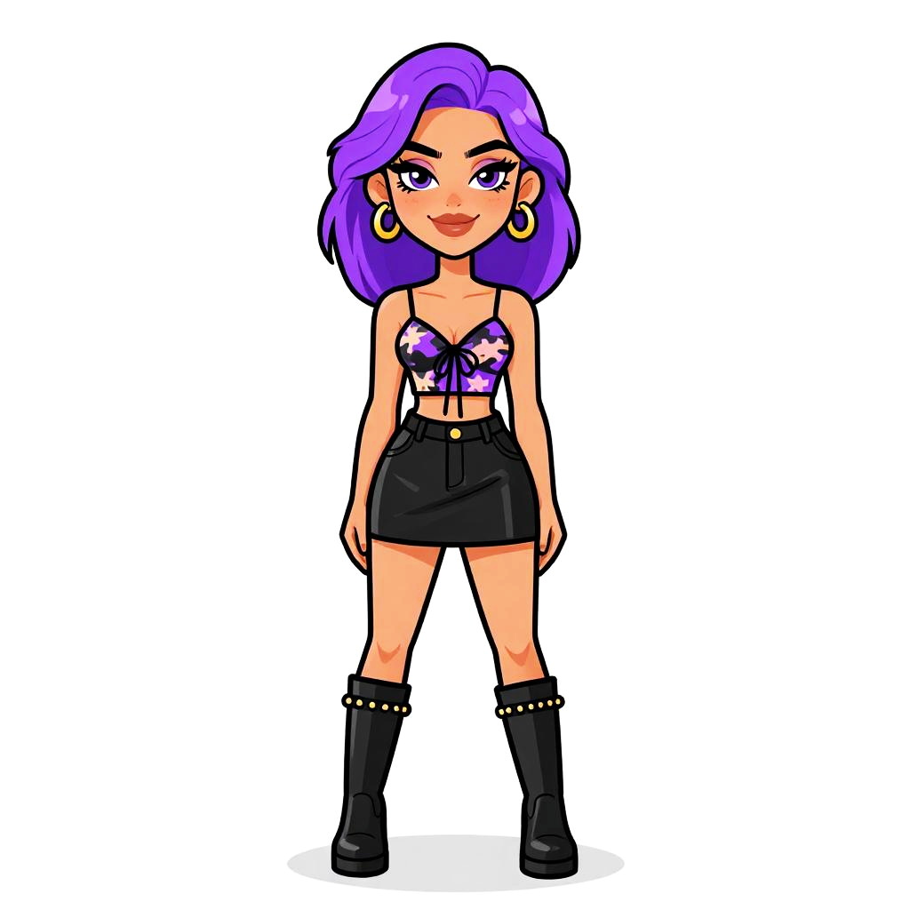 Woman with pretty face and pretty hair. Woman, contemporary casual, eyelet lace white tank top, scoop neckline, button front, peplum waist, black flared mini skirt, ankle boots with lace-up detail, solid neutral background. --sref 1467
