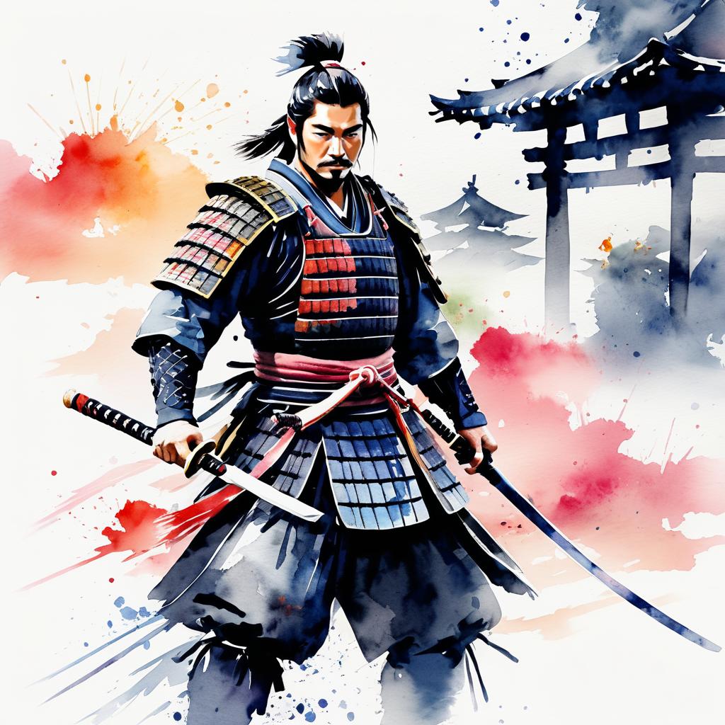 Samurai warrior in watercolor, high resolution, simple, cinematic composition.