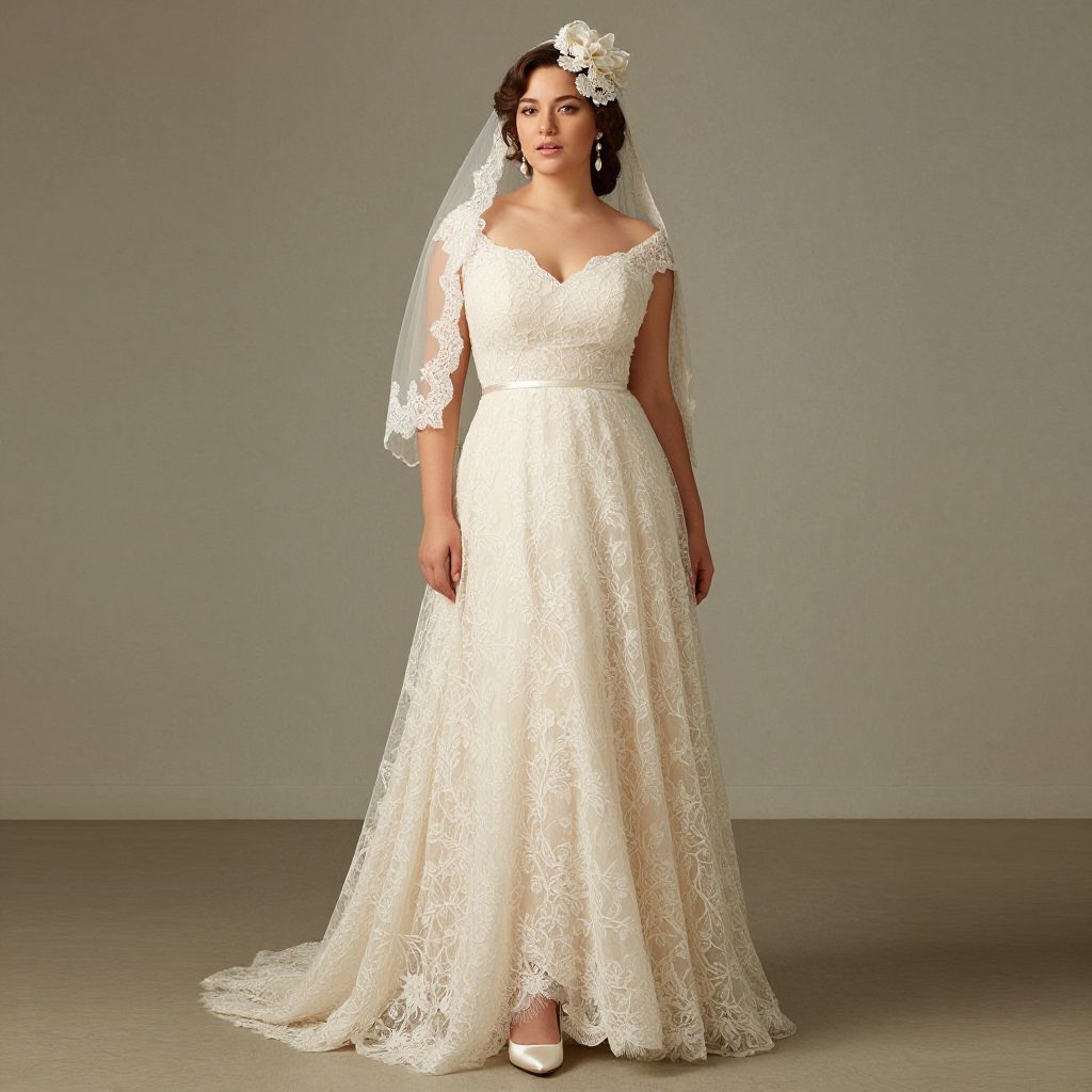 Full body shot, lanky woman, elegant lace wedding dress, intricate floral lace overlay, sweetheart neckline, fitted bodice, flowing A-line skirt, delicate cap sleeves, soft tulle layers, satin ribbon belt, vintage lace veil, ankle-length satin shoes, pearl drop earrings, subtle makeup, romantic hairstyle, soft curls, natural light, dreamy atmosphere Sexy. Pretty face and beаutiful eyes. Big breasts