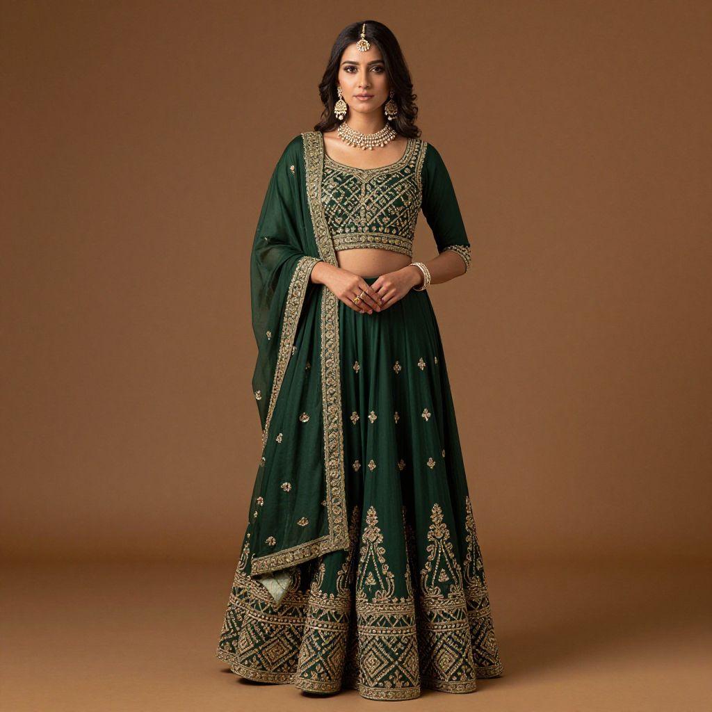 "Woman Punjabi Attire Dress, a woman in a green and yellow dress posing for a picture"