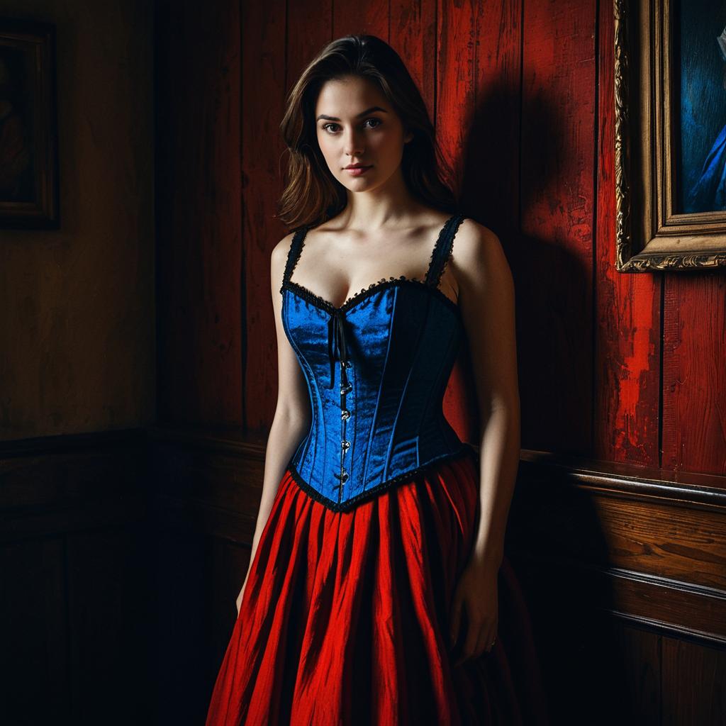 Woman in Belle Dress, waist-up editorial portrait, photorealistic tones --sref 1399
