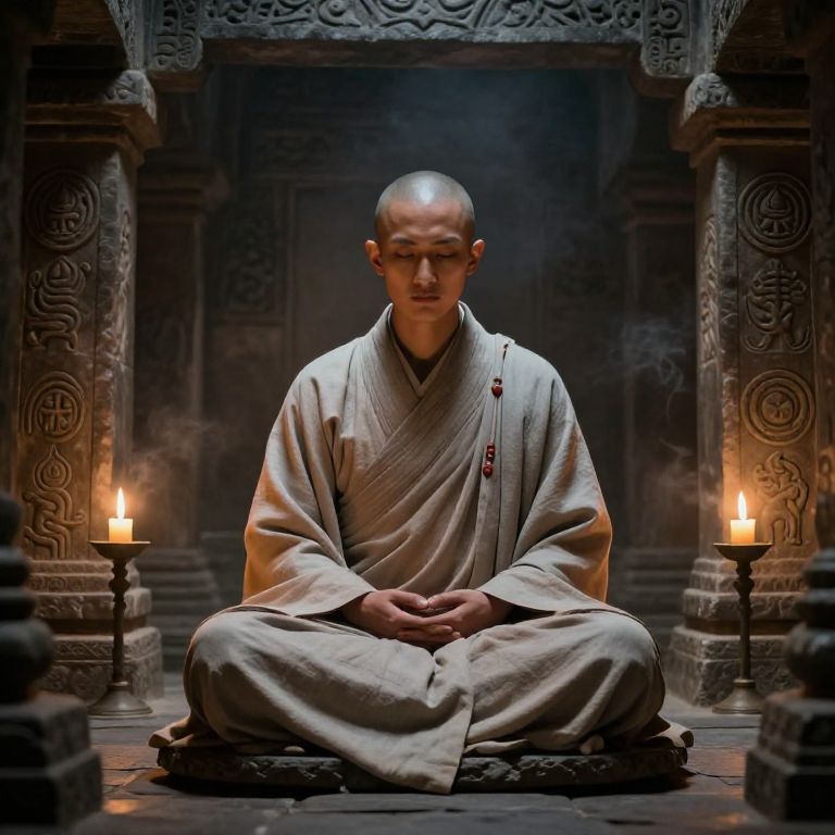 Mystical Monk Meditating in Shrine