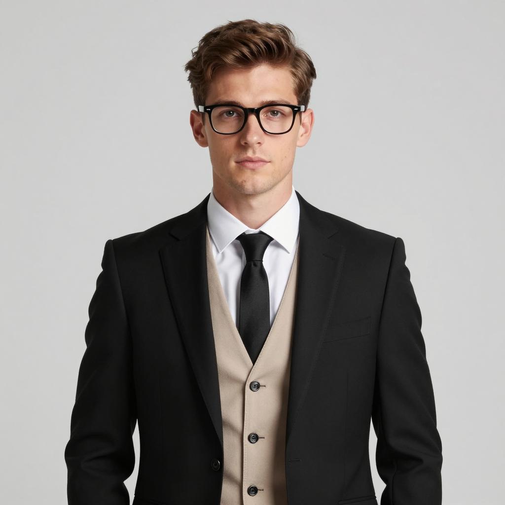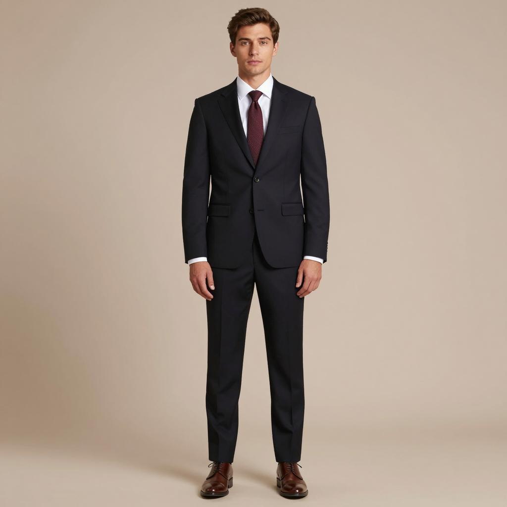 Man party suits costume, photorealistic, full-body portrait of a man, standing, hands in pockets, wearing gray three-piece suit, white dress shirt, maroon tie, brown leather shoes, short brown hair, trimmed beard, neutral expression, light gray background, studio lighting, realistic ure, professional style, formal attire, medium build, looking directly at camera, minimal shadows