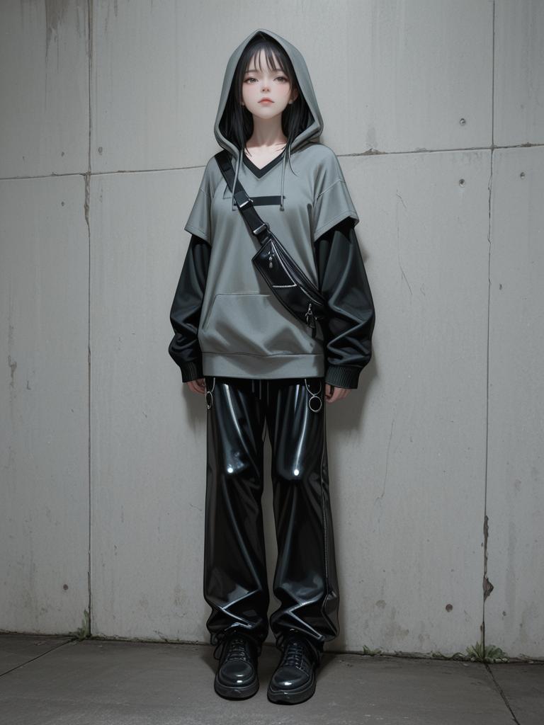 1girl, realistic face, full body shot, Woman, casual streetwear, neon green cropped hoodie, drawstring hood, long sleeves, raw hem, black and white gingham high-waisted pants, loose-fitting, cropped just above the ankle, photo studio with a white background.