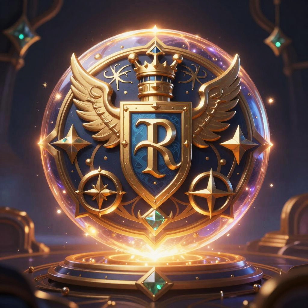 Crest maker free emblem creation scene, intricate heraldic symbols emerging from a glowing orb, mystical and fantasy-themed environment, rich jewel tones, dramatic lighting, magical aura, digital fantasy art style, elegant and detailed composition.
