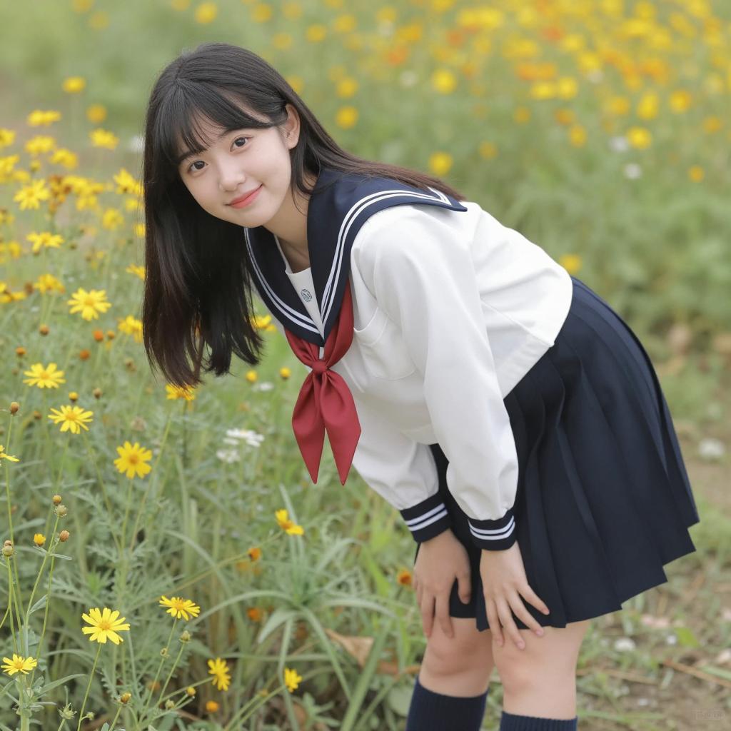 Asian Woman in Sailor School Uniform