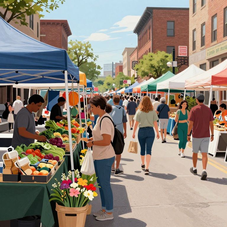 A vibrant painting style image of virtudes depicted as diverse people helping each other in everyday life, set in a lively urban park with trees, benches, and warm sunlight emphasizing community and empathy.