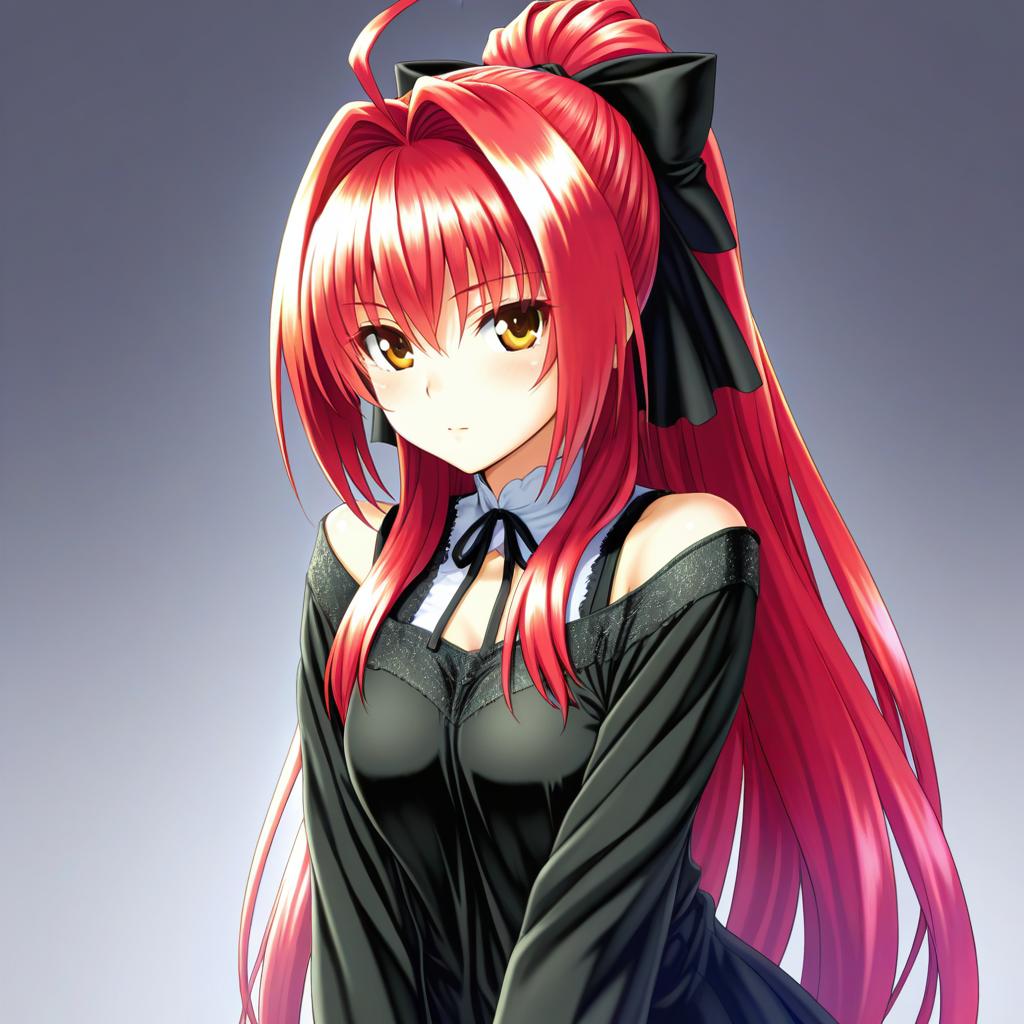 Corticarte apa lagranges, shinkyoku soukai polyphonica, 1girl, red eyes, red hair, very long hair, long hair, ahoge, ponytail, hair intakes, by artist mitsugu, illustrious
