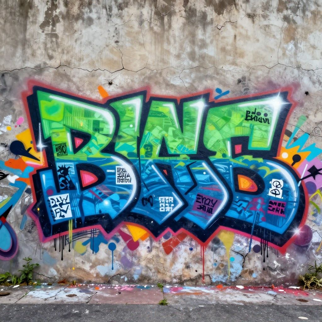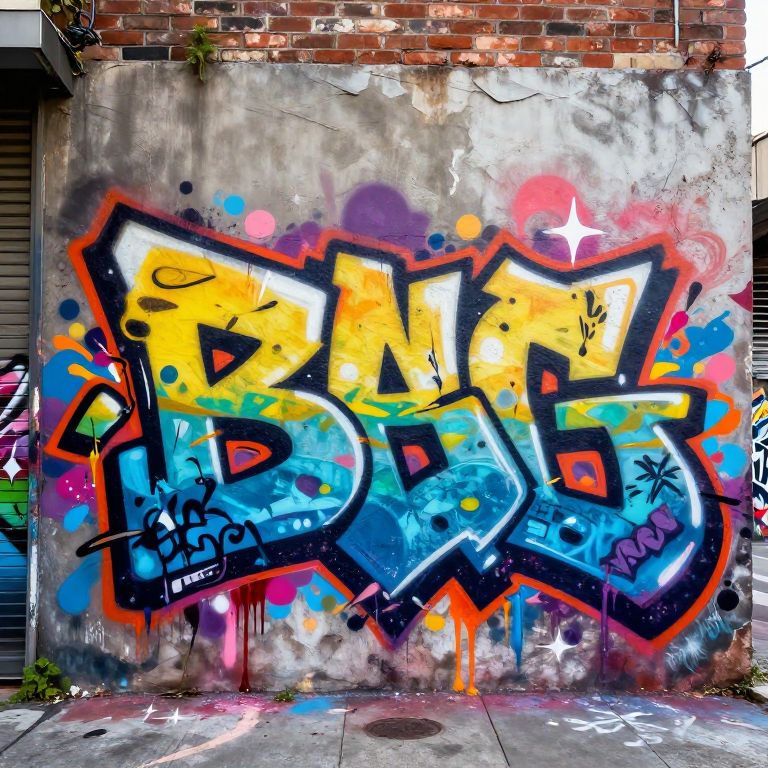 Make album cover online free capturing an urban street art mural style with graffiti elements, vibrant splashes of paint, rough textures, energetic composition, ideal for hip-hop or alternative music genres.