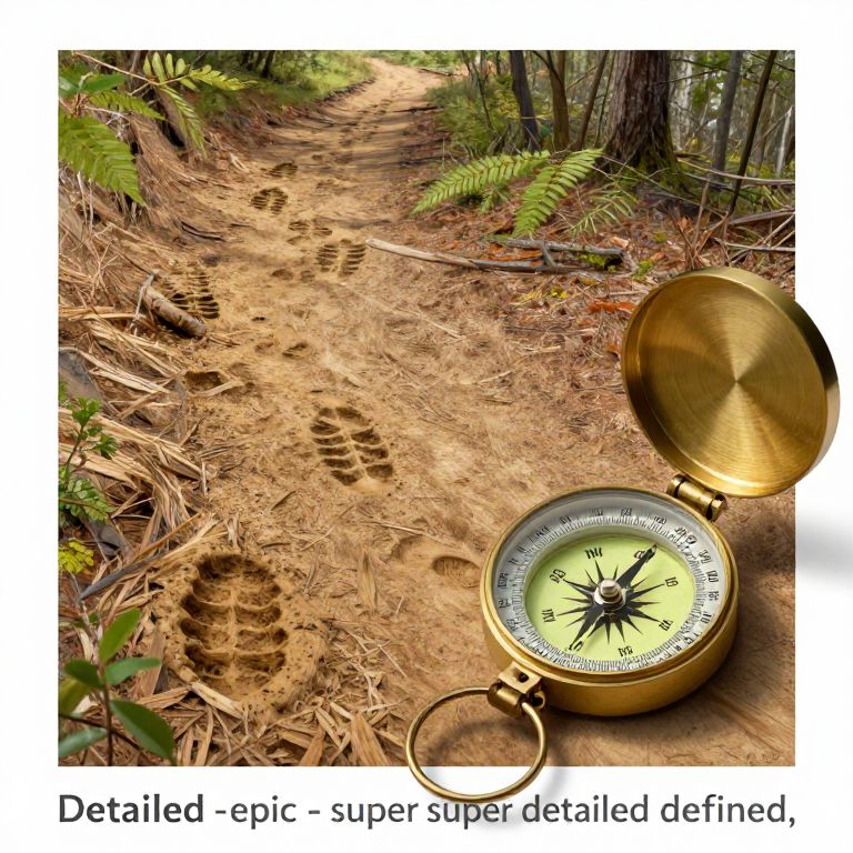 "Detailed A Background of animal tracks on a forest, compass, painting, epic, super detailed, defined,"