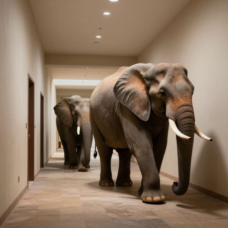 Time-dilated elephants walk through a hallway of suspended moments, where one step ages them years, while another step reverses entire seasons.