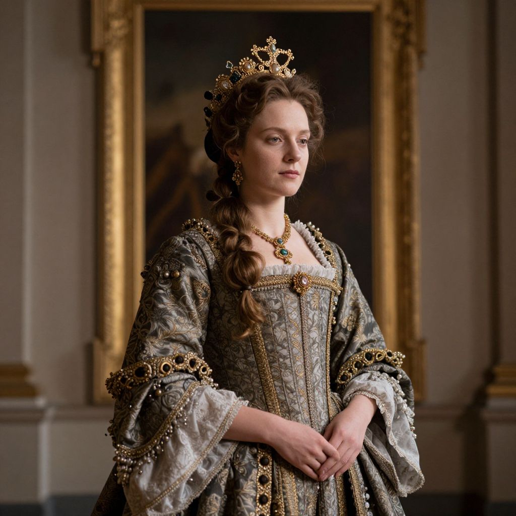 Enveloped in the opulence of German Renaissance splendor, the noblewoman stands as a living testament to the transient elegance of a bygone era, her poised demeanor hinting at the quiet strength and introspection beneath the ornate facade.
