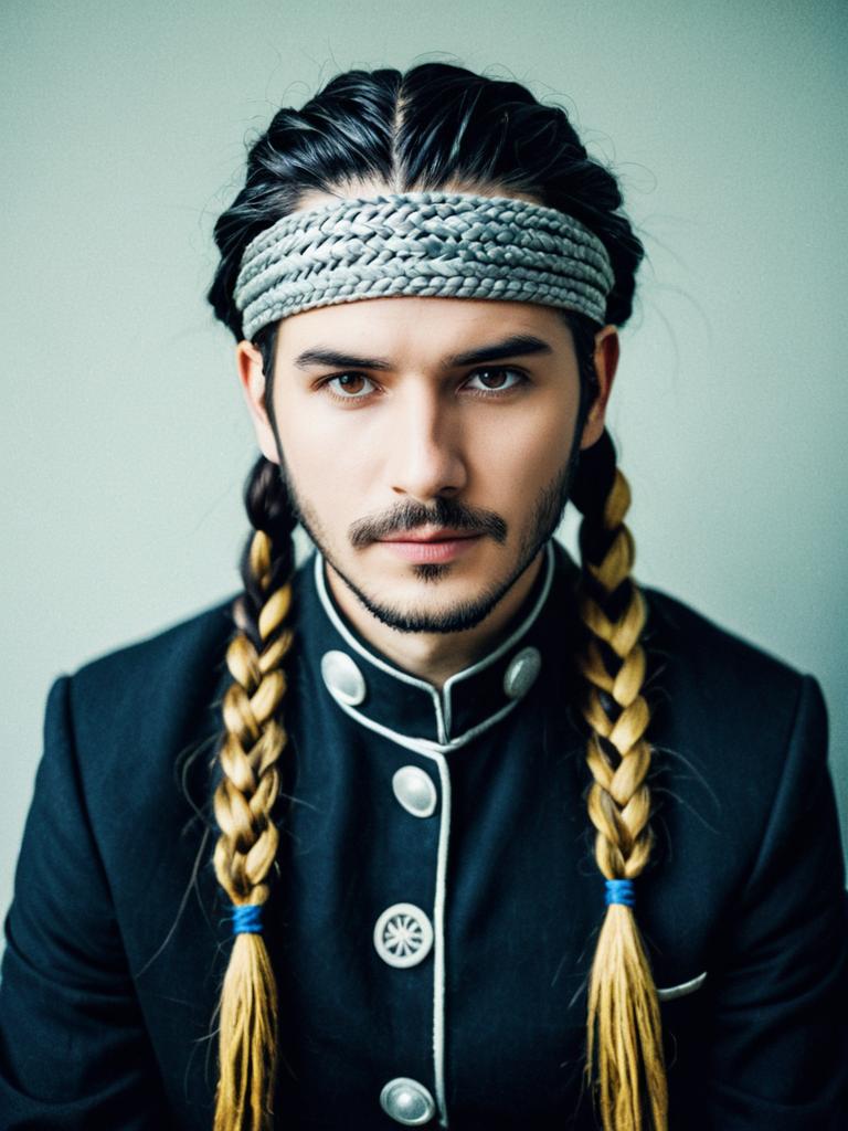 Man in Braided Hairstyle costume, professional cosplay editorial headshot