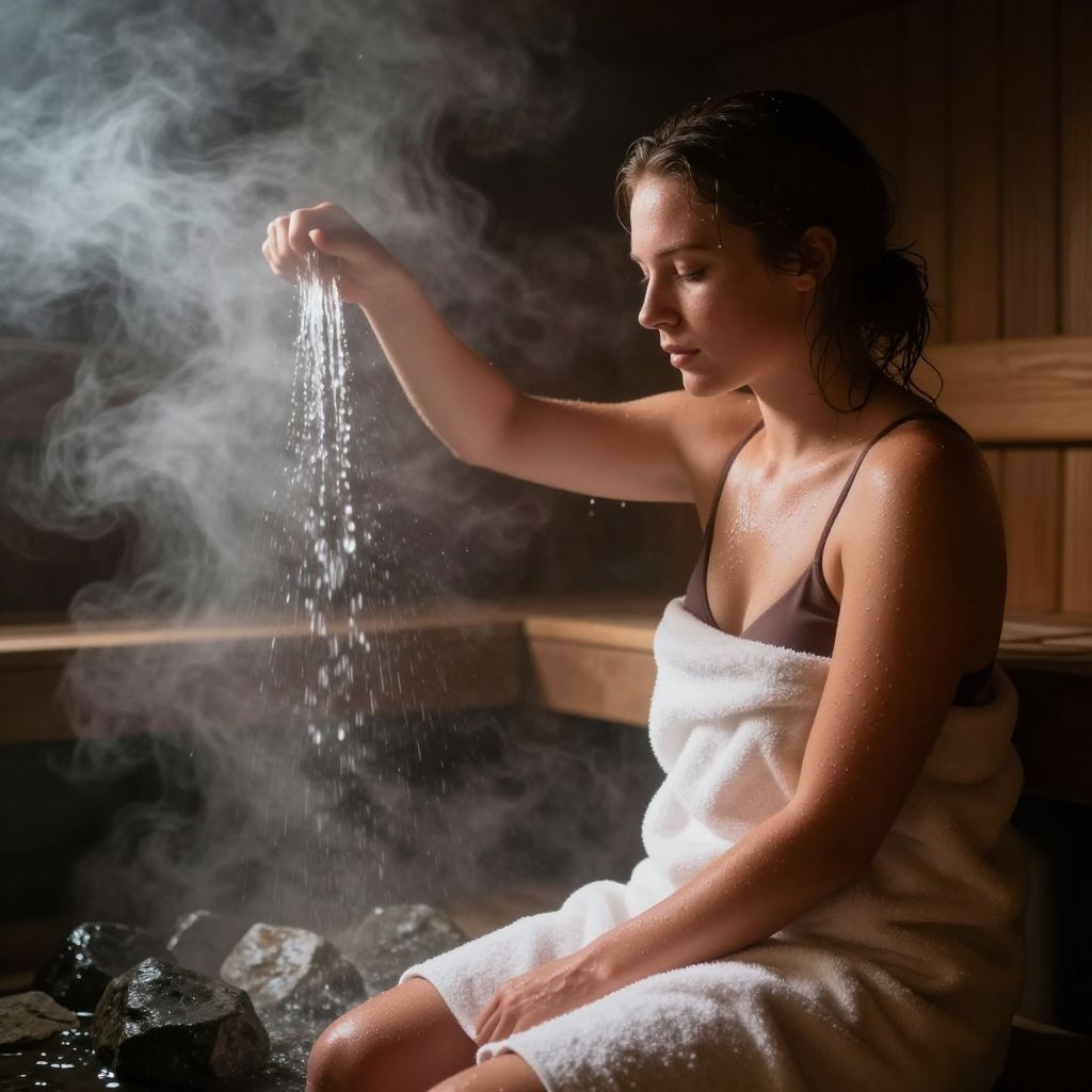 DEN_faye_forestfaye, (sitting in a dark wooden sauna with (steam filling the room:1.2) (wearing a towel:1.3) and swimwear, sauna, (steam:1.3), atmospheric, pouring water over (hot rocks making steam:1.2), sweaty, sweat beads, sweating, (steam filling the room:1.3), (steaming:1.3), smoke, (smoky:1.2), (steamy:1.4), (steaming:1.2):1.2), bokeh, f1.4, 40mm, photorealistic, raw, 8k, textured skin, skin pores