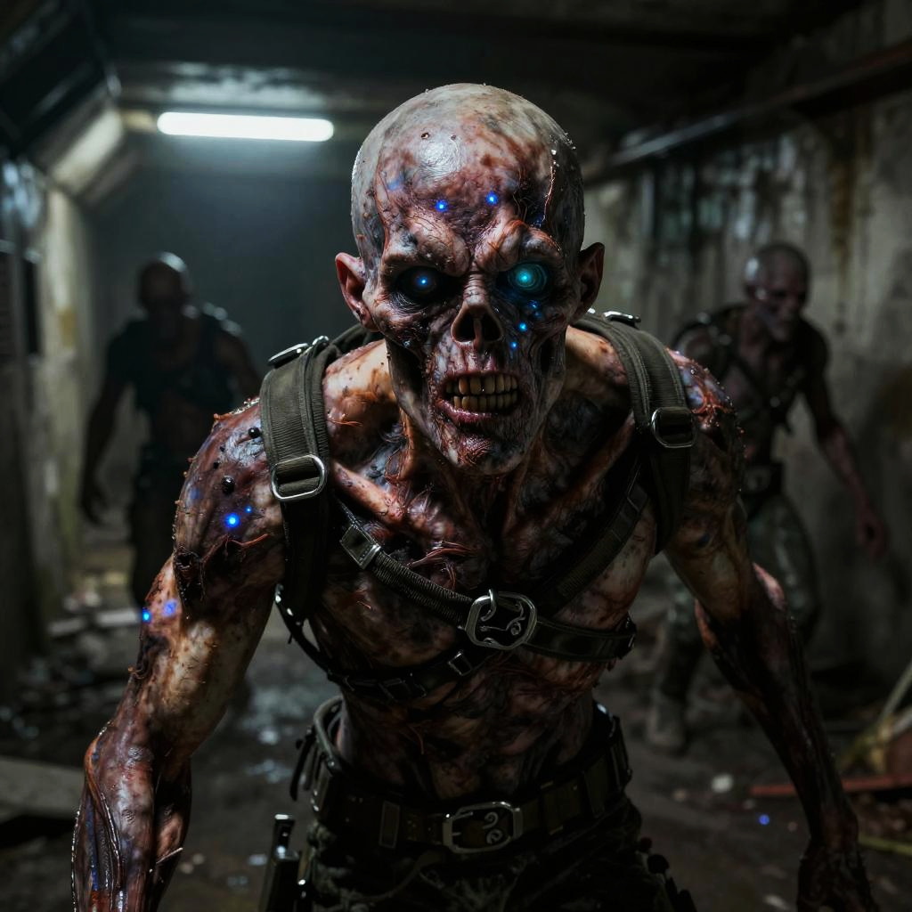 Intense scene of Metro 2033 mutants attacking survivors inside a derelict metro tunnel, aggressive mutated forms, debris scattered, dramatic lighting highlighting grime and ruin, immersive post-apocalyptic vibe