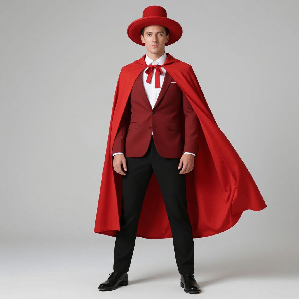 Facilier Costume Man, man in a costume with a red cape and a hat
