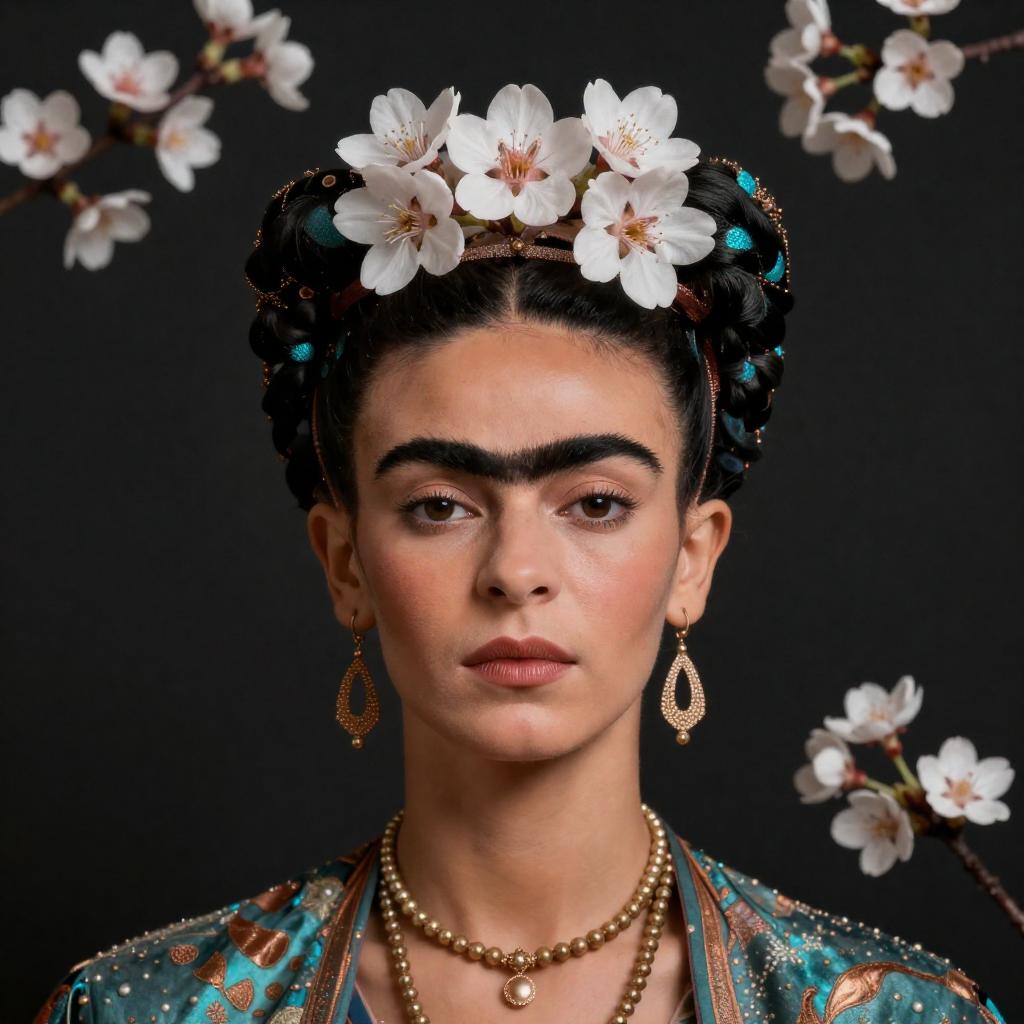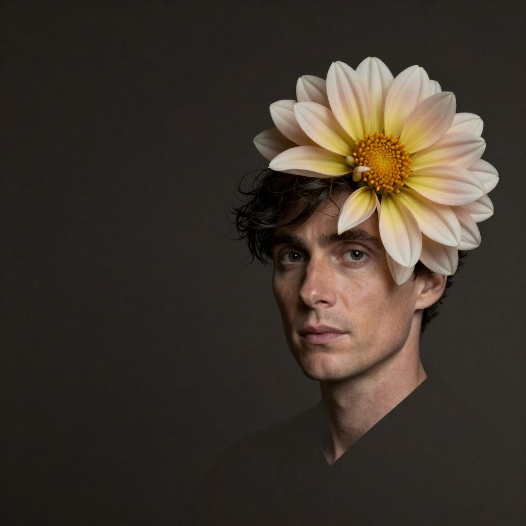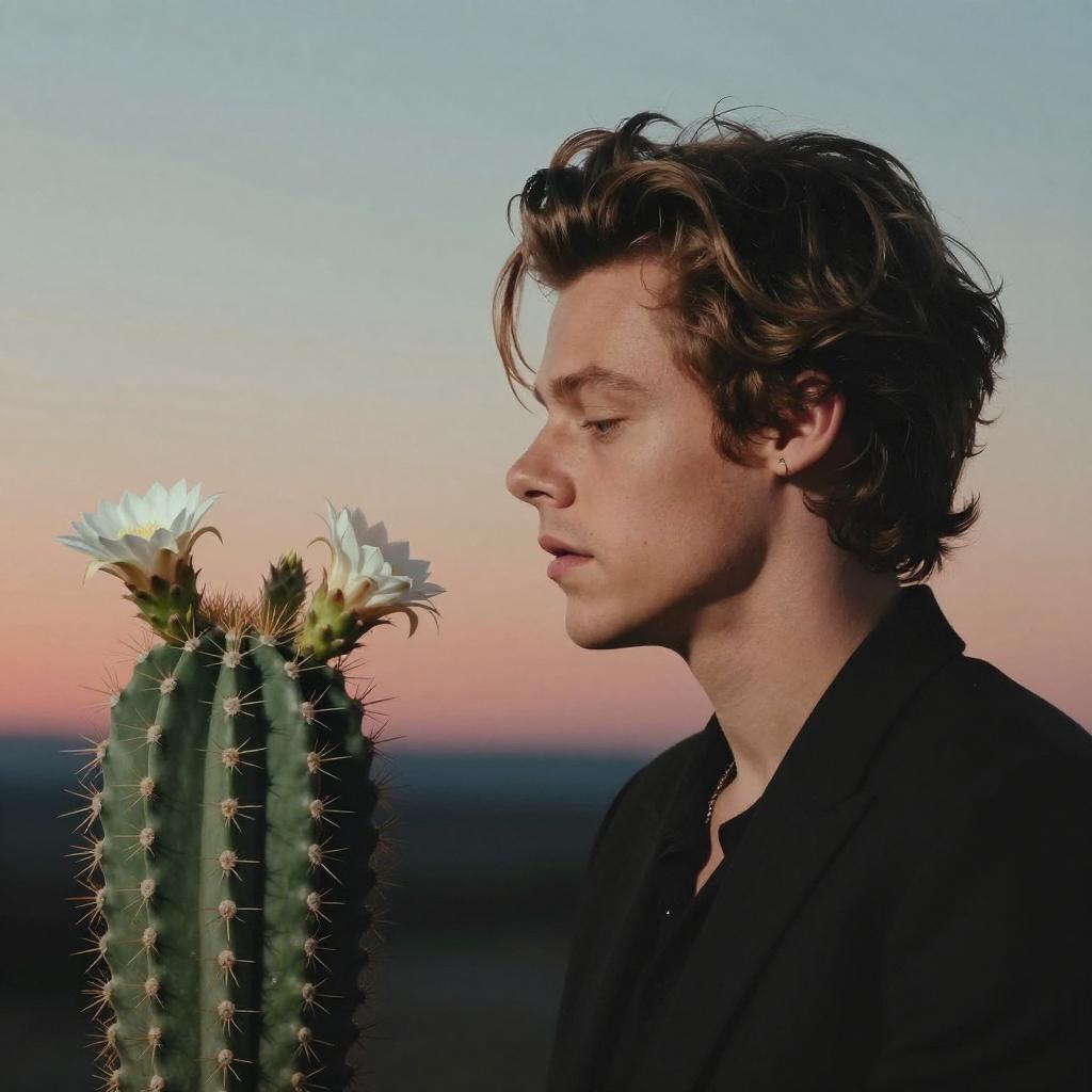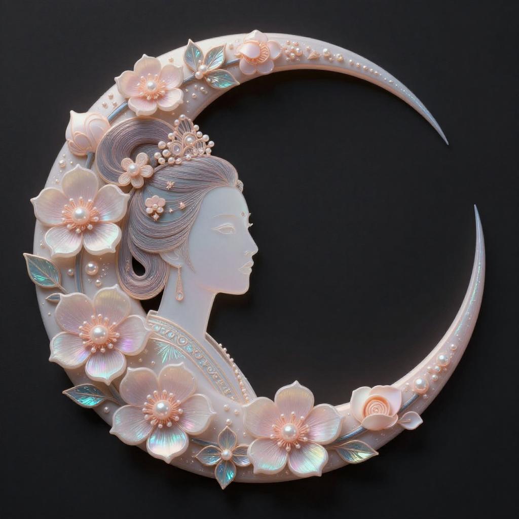 Prickly Zhang Ziyi and blooming Moonflower, resembling young Empress Wu Zetian in face, dark background, beautiful aurora pastel with pearlescent highlights, creative, original, 8k, Zhang Ziyi, silhouette, intricate details, creative, playful, detailed, positive, minimal but delicate and beautiful, minimalism, graphic