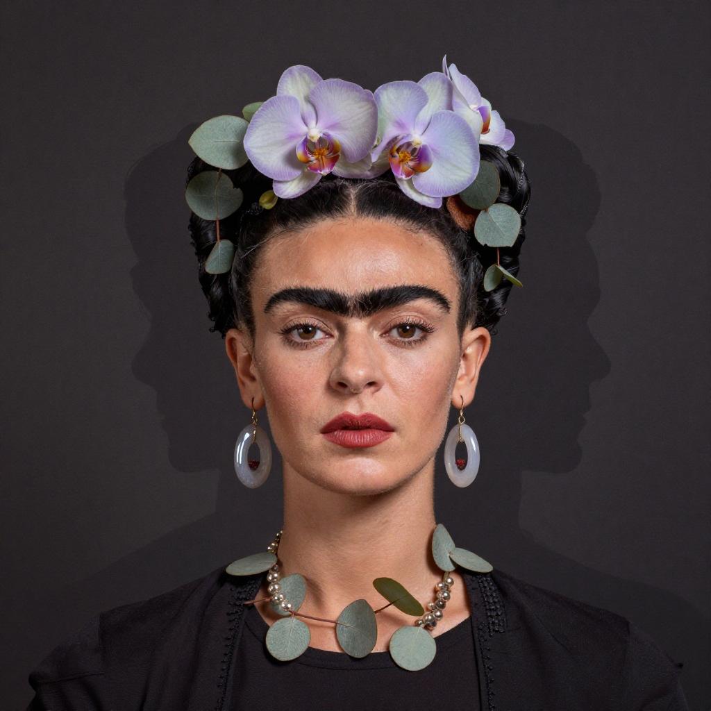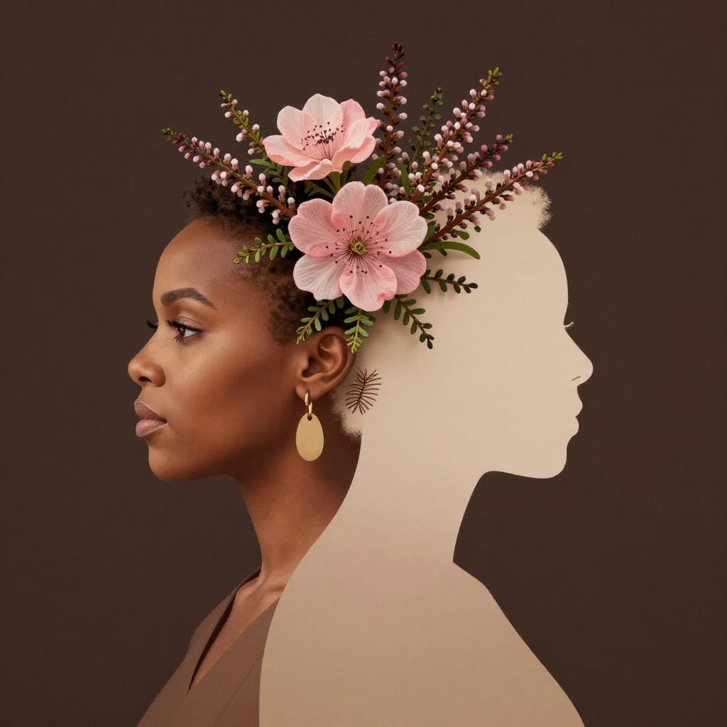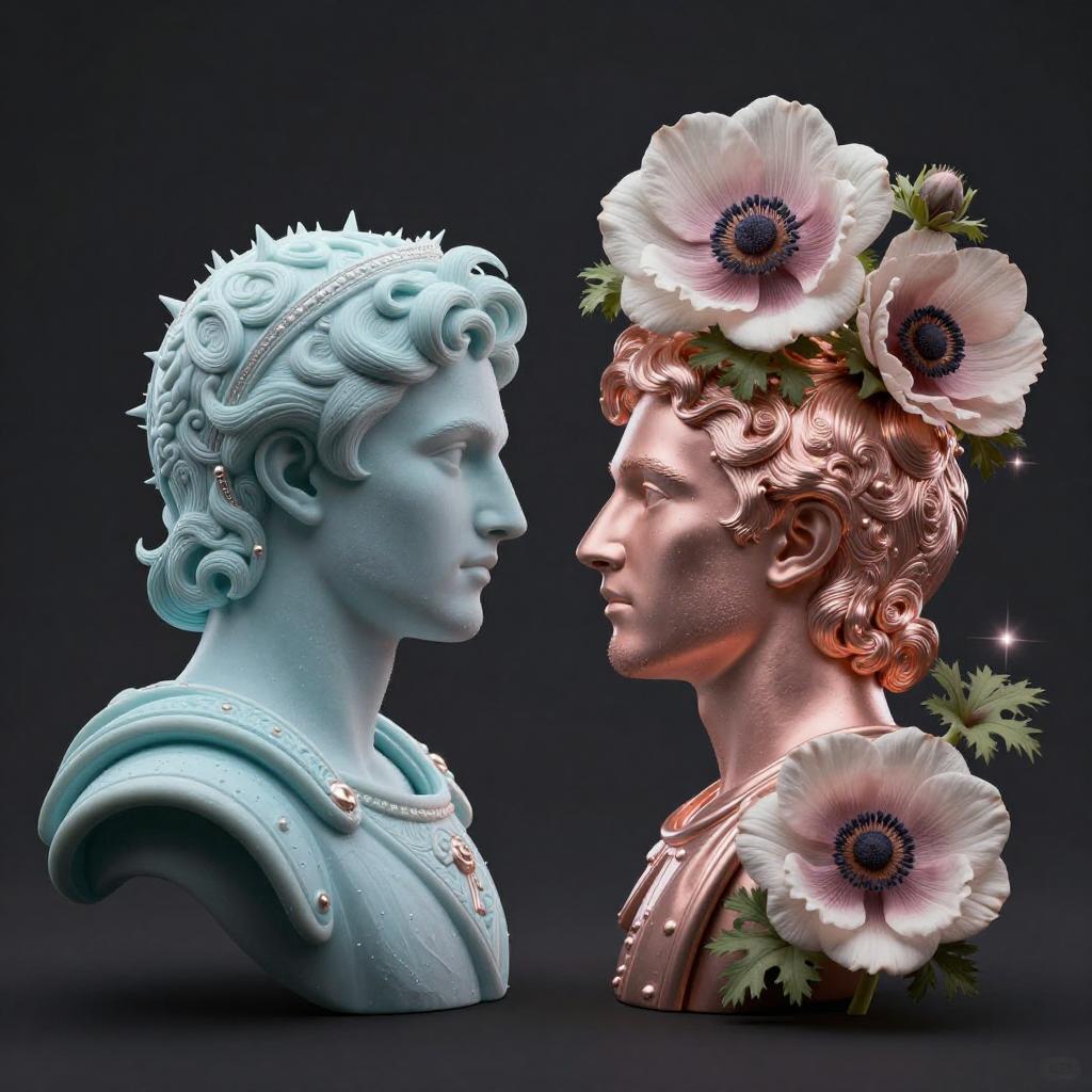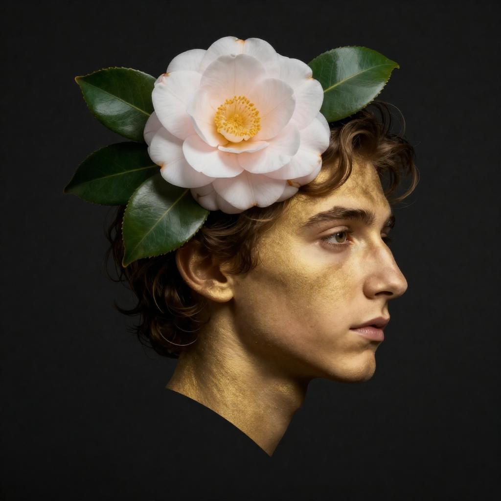 Prickly Zhang Ziyi and blooming Moonflower, resembling young Empress Wu Zetian in face, dark background, beautiful aurora pastel with pearlescent highlights, creative, original, 8k, Zhang Ziyi, silhouette, intricate details, creative, playful, detailed, positive, minimal but delicate and beautiful, minimalism, graphic