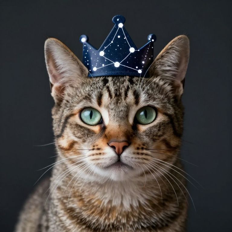 A cat wears a crown of constellations, ruling a kingdom made entirely of the dreams people forget after waking.