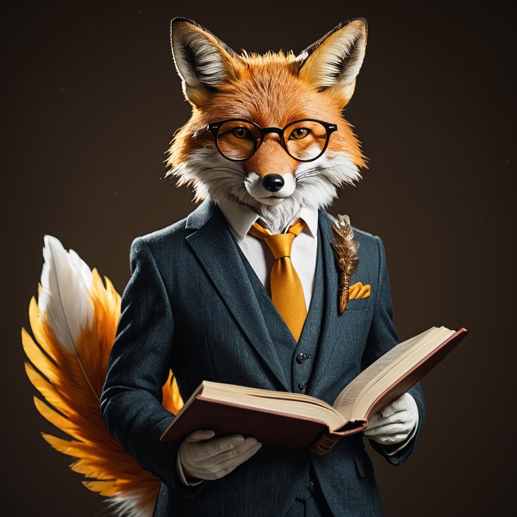 A coherent detailed character design of anthropomorphic fox bard with a steampunk monocle and a violin, deeply trans character practicing archival magic, set in ancient library with floating books and brass gears, dimly lit by candles, rendered in steampunk fantasy watercolor illustration inspired by Alphonse Mucha and Studio Ghibli