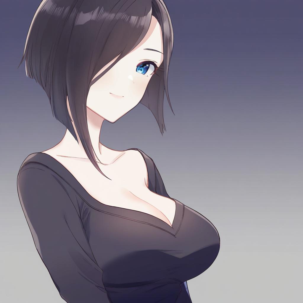 Ark royal (azur lane), azur lane, 1girl, blue eyes, hair over one eye, black hair, short hair, large breasts, cleavage, by artist buzz (moi), leet