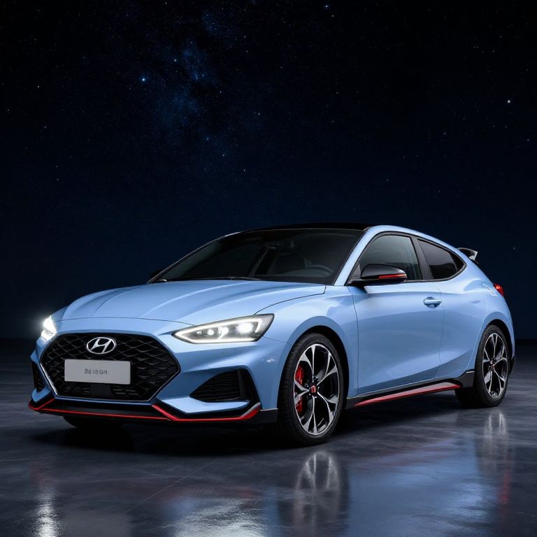 Hyper-realistic professional photograph of a blue Audi RS7 parked on a wide rural road with tinted windows. The car features sharp modern styling with red brake calipers visible through the alloy wheels. The scene is captured in crisp midday sunlight with real-world reflections on the car's surface. Background includes a golden wheat field and dense coniferous forest under a clear blue sky.