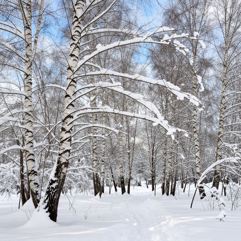 Snow-Covered Birchwood Winter Forest