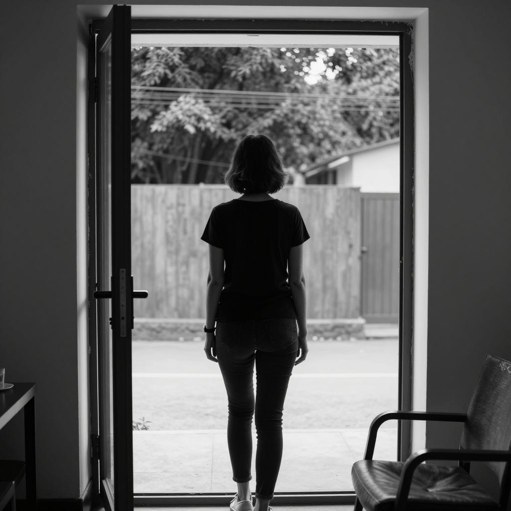 Distressed Woman in Black and White