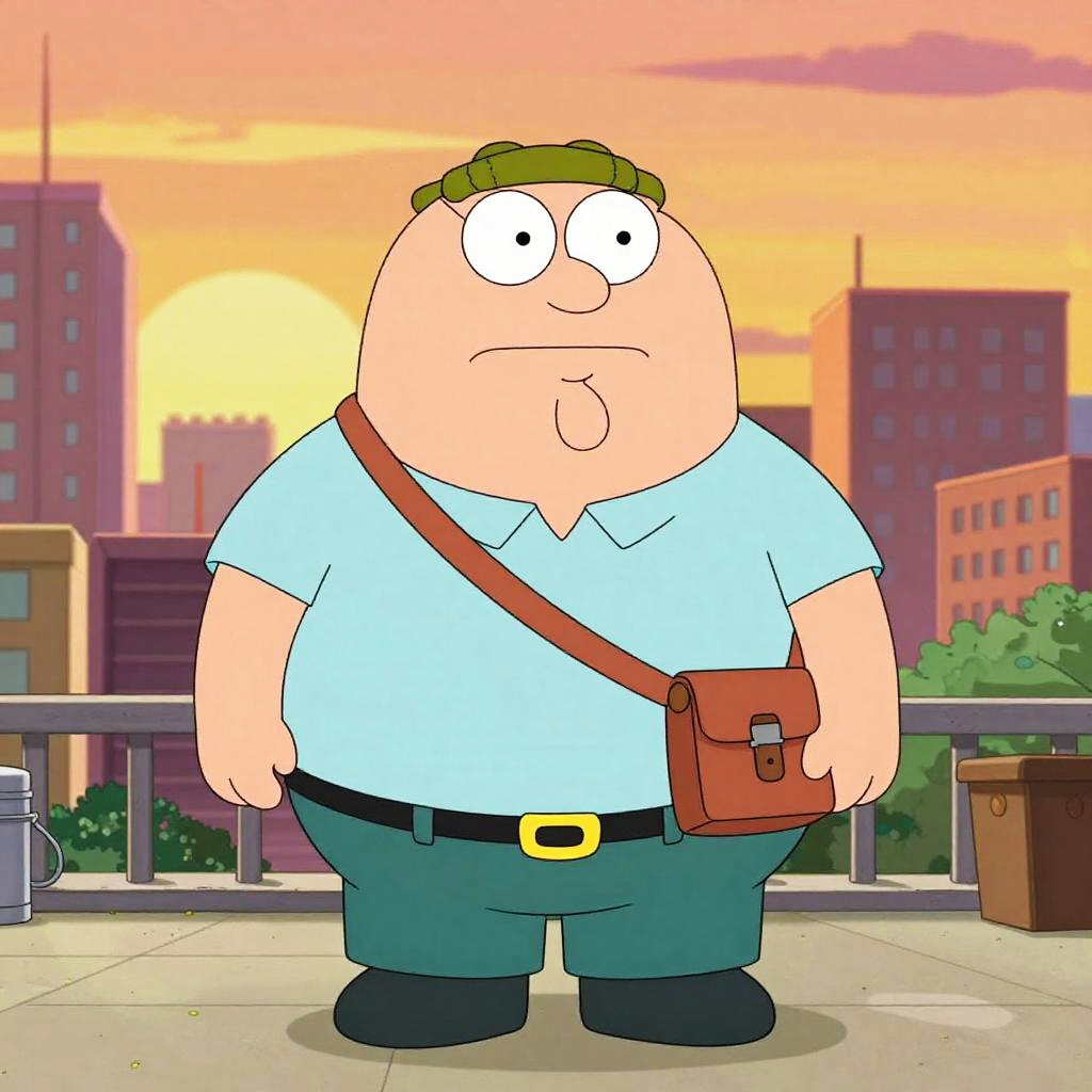 Family Guy Style Cartoon Cityscape