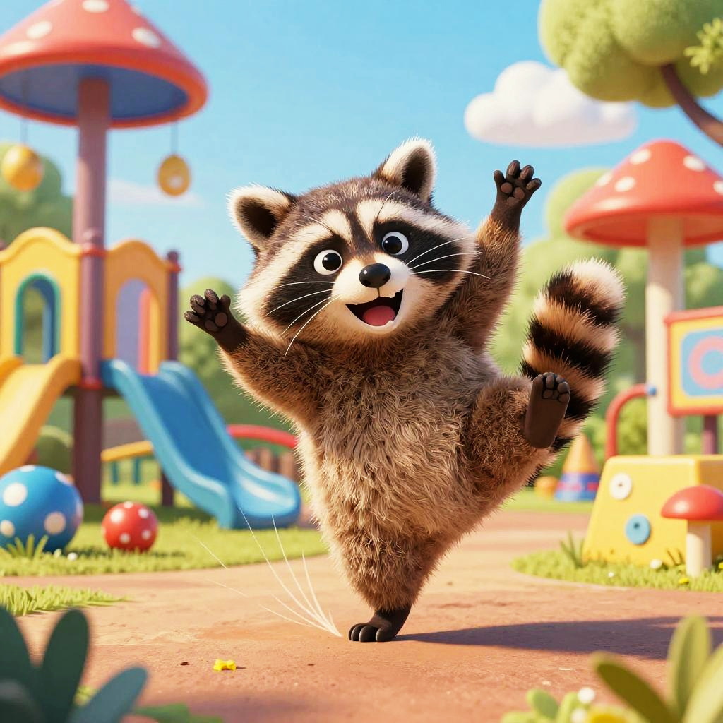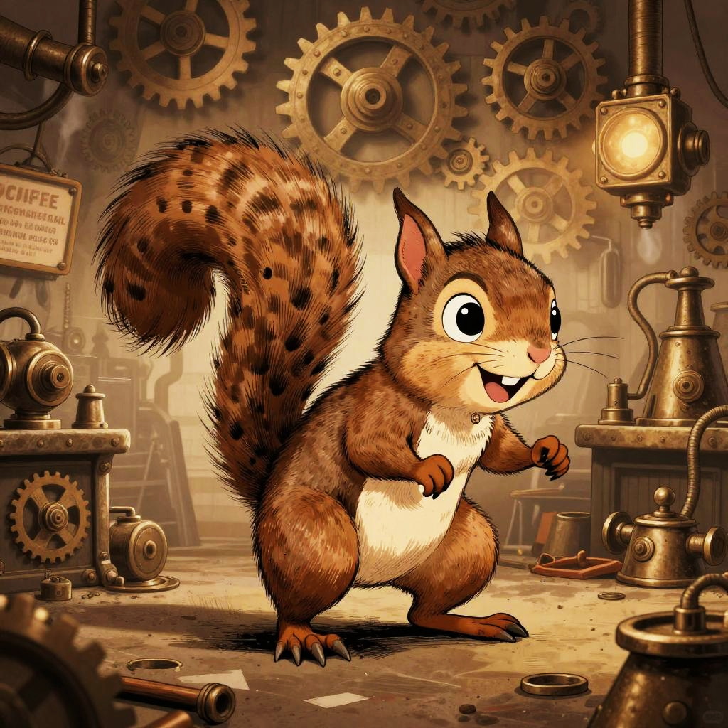 Jumping red squirrel ninja in bamboo rooftop during a misty dawn, dynamic martial arts anime style with vibrant colors, sharp motion blur, and strong contrasts. Smiling expression, playful energy, dynamic perspective, motion lines, saturated palette, dramatic lighting, environmental details like signs, props, and weather, kid-friendly, whimsical poster illustration, clean shapes, high contrast, vibrant mood, polished final render.
