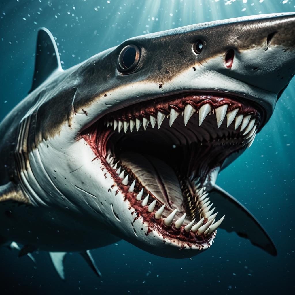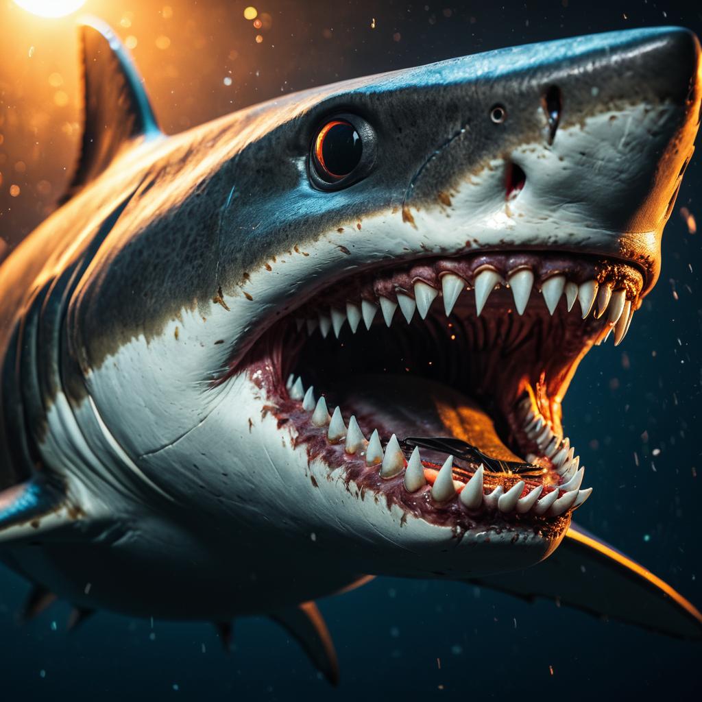 Caramel shark with 18 rows of teeth in its mouth, lovecraftian horror monster shark, full hd, canon eos r5, octane render Photography, Cinema, 8k, Best Quality, Cinematography, Color Grading, Ultra Wide Angle, Depth Of Field, finely detailed, beautifully color coded, crazy details, intricate details, beautifully color grading, cinematic, cinematic lighting, editorial photography, photo shoot.