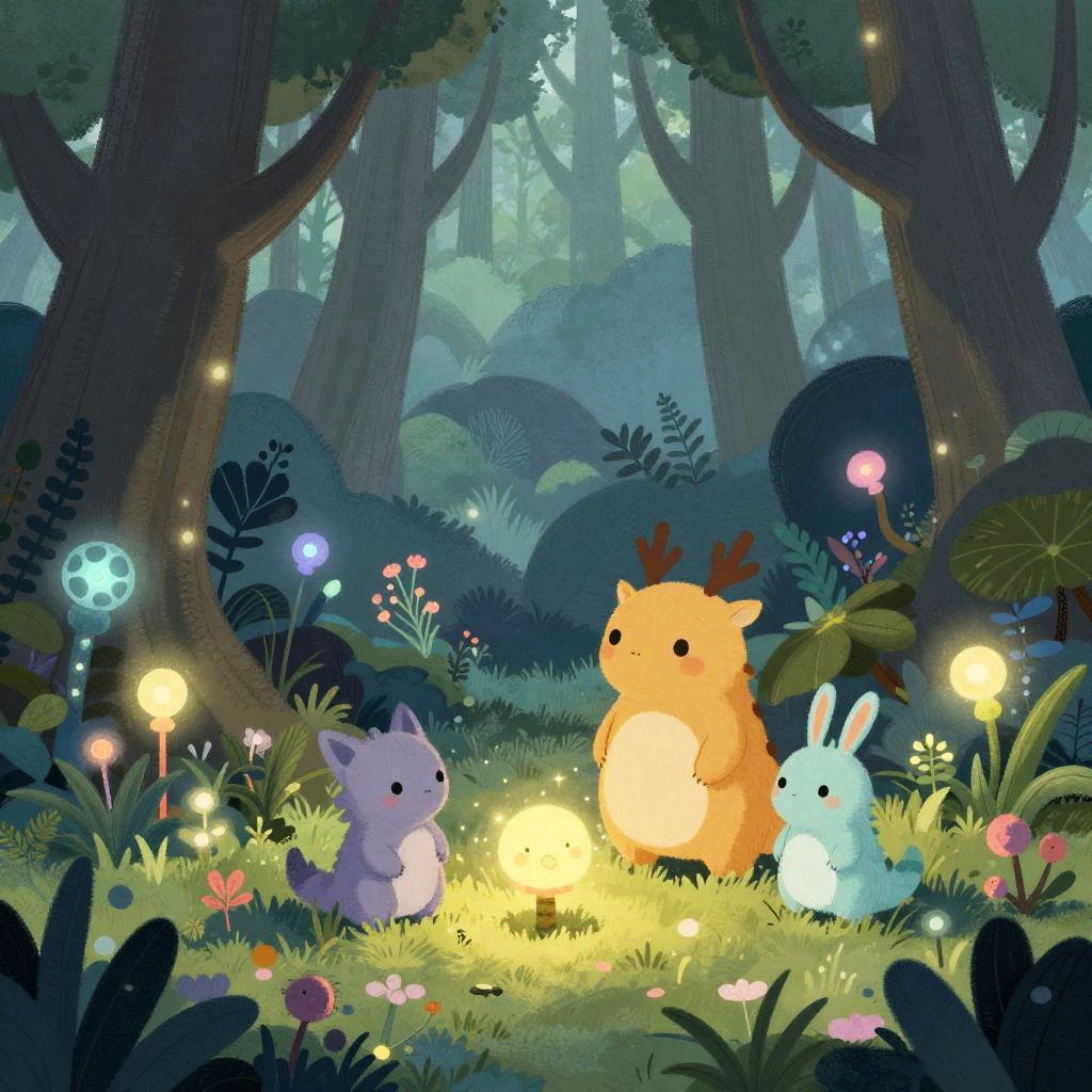 Whimsical Bioluminescent Fantasy Forest