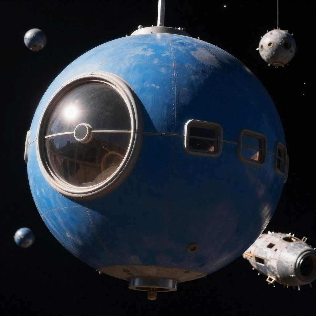 Blue Spherical Spaceship in Space