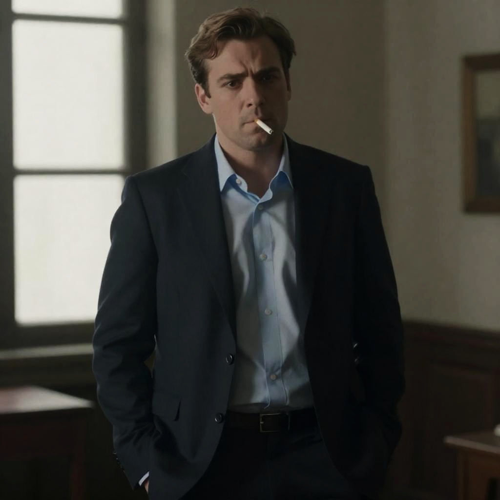 Mysterious Man in Library Setting