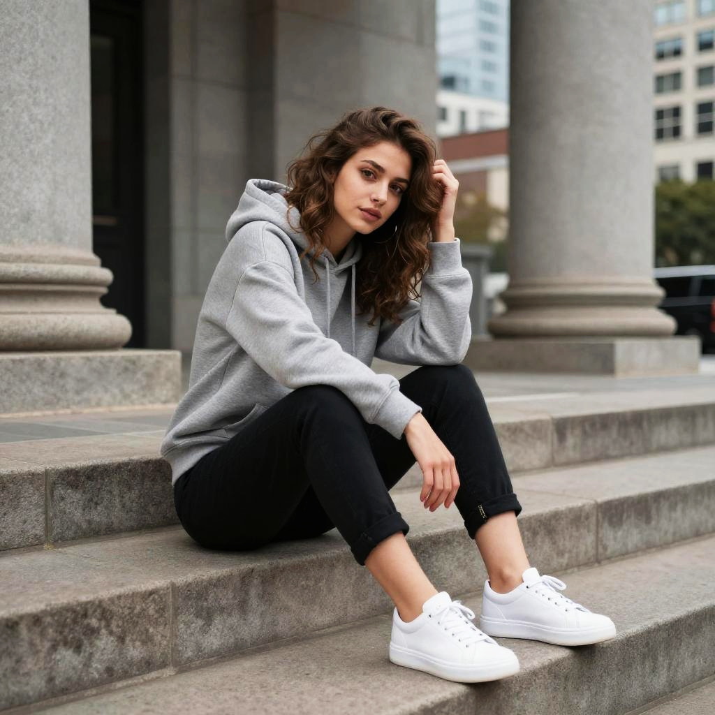 Smiling Young Woman on Stone Steps