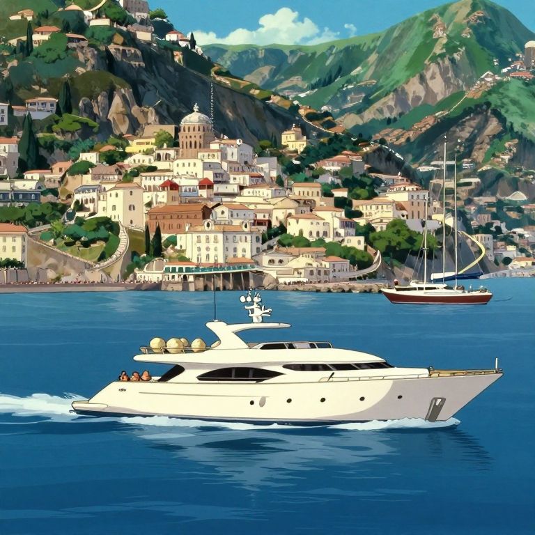 Luxury Yacht Sailing Near Amalfi Coast in Miyazaki Style