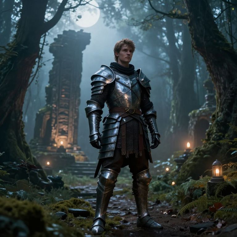 DND male character art, a rugged ranger blending into an ancient forest background, carrying a longbow with quiver, detailed nature-inspired clothing and gear, dynamic lighting filtering through trees, photo-realistic textures and immersive fantasy environment