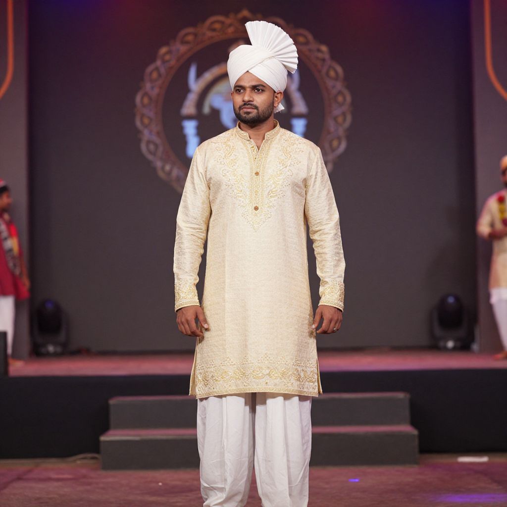 Man Festival Attire Costume, man in a traditional indian costume standing in front of a stage