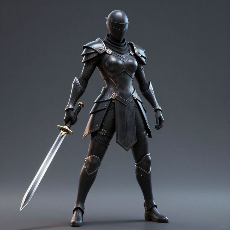 Cryptocurrency D&D character, warforged, ninja, smooth armor, small shoulders, sleek design, built for speed, wrist blade, full body v 5,