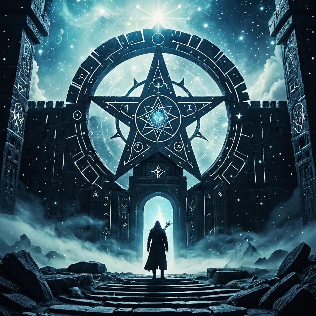 A breathtaking celestial scene of an enigmatic cosmic traveler in an endless celestial labyrinth, surrounded by twisting star trails and pulsating cosmic lights for a serene and otherworldly atmosphere,
