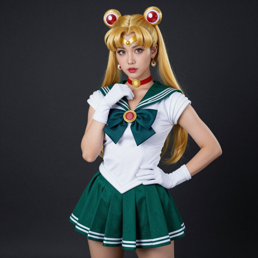 Sailor Moon Green Costume, woman in a green sailor suit posing for a picture