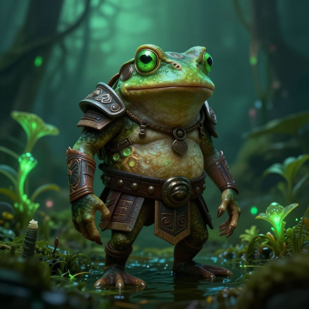 Thomas Kinkaid frog rogue:: digital painting, fantasy illustration, oil paint, extremely detailed, photorealistic, fantasy urban background, cinematic lighting, D&D style,