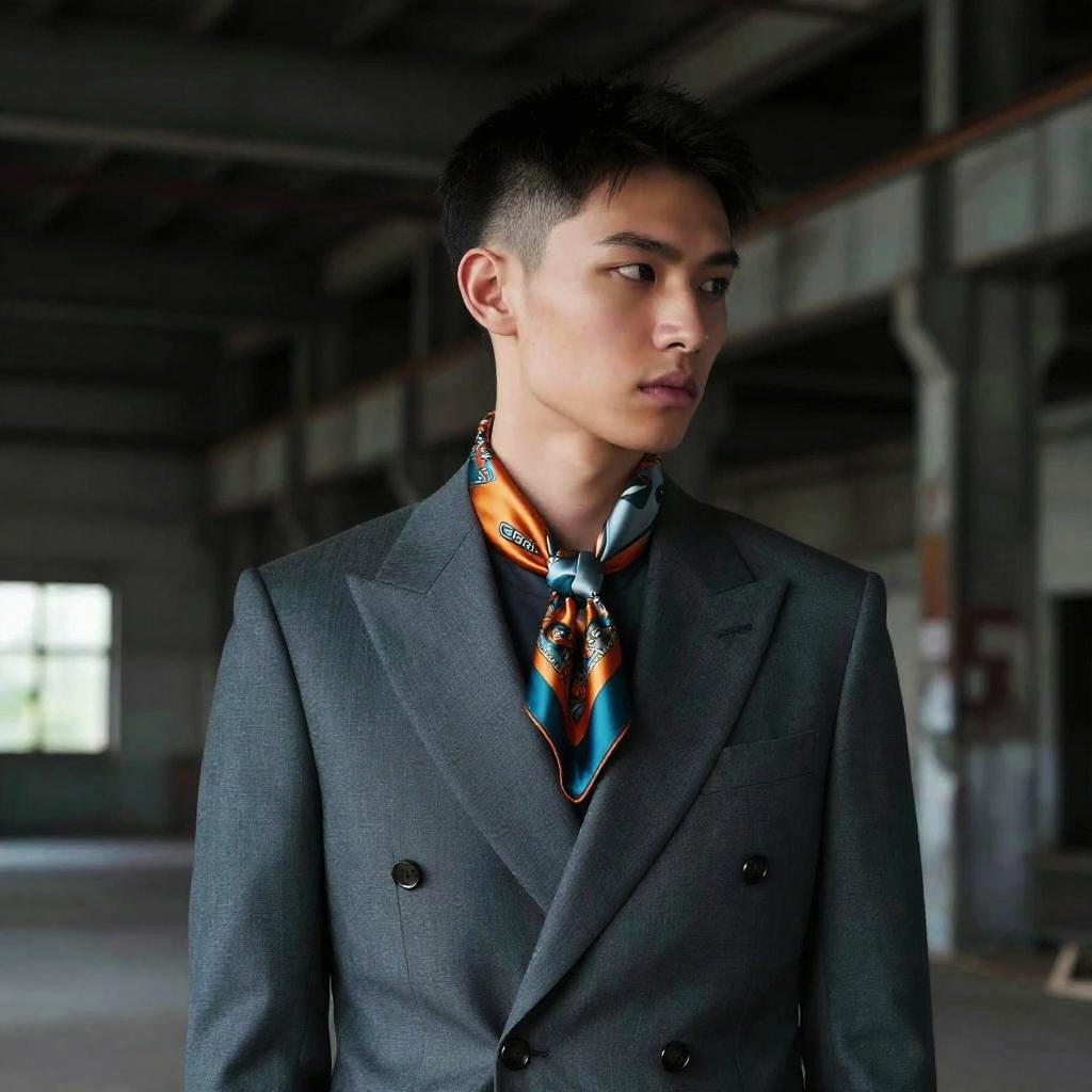 Layered Fade hairstyle on teenage boy, wearing preppy sweater vest layered over a crisp white shirt and tailored chinos, in foggy coastal pier, captured in fashion editorial style with misty golden hour backlight.