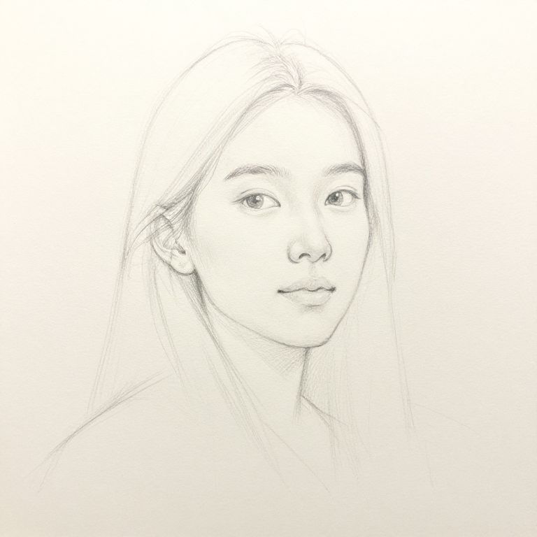 Delicate Pencil Sketch Outline Portrait