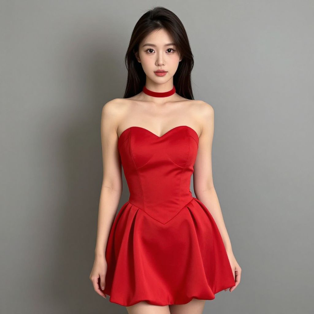Woman in Red Sweetheart Dress