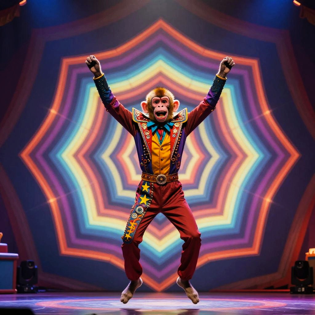Joker Monkey Acrobat in Kaleidoscopic Tent